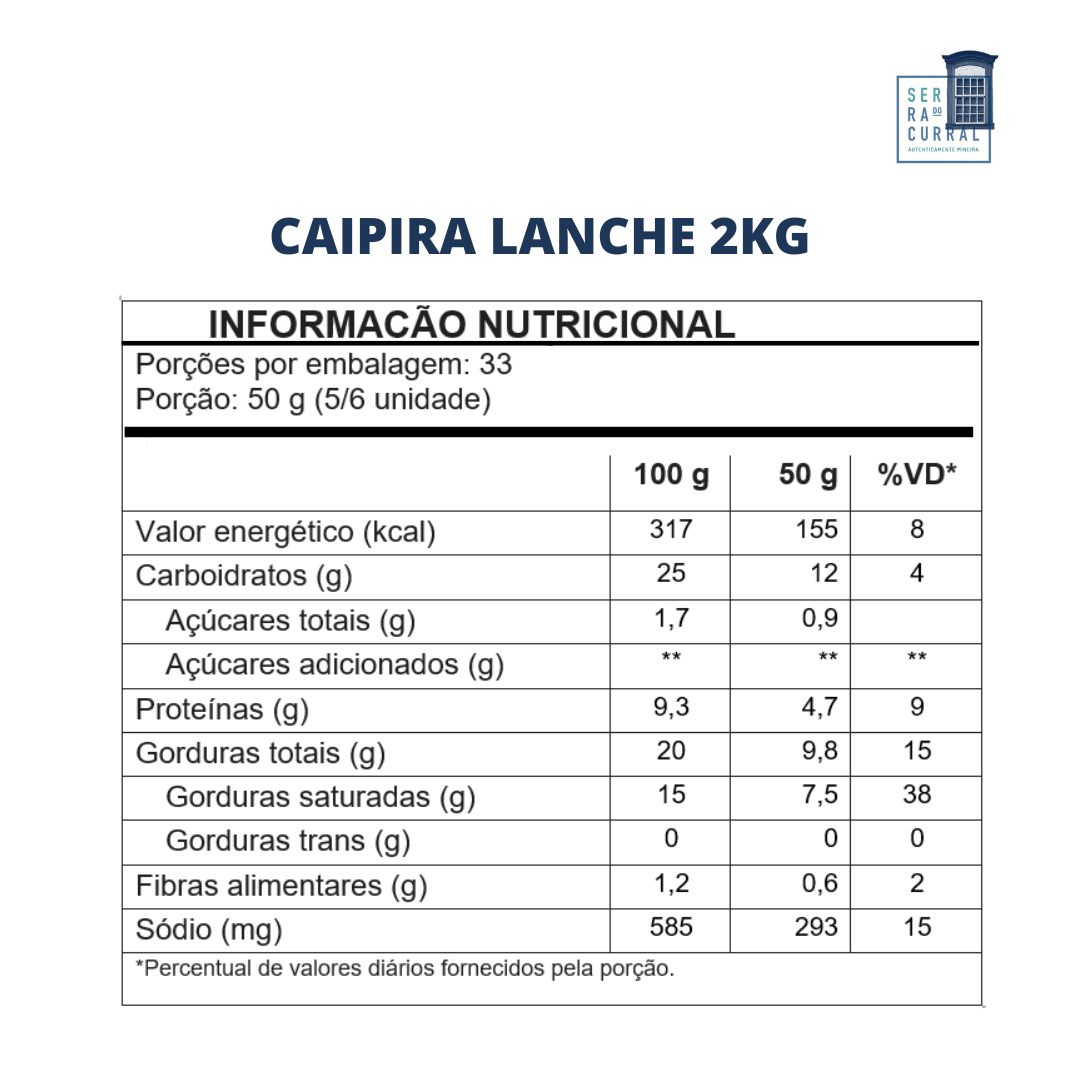 PÃO DE QUEIJO SERRA DO CURRAL CAIPIRA LANCHE 2KG